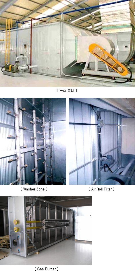 도장 설비 및 도장 작업장 내에 적절한 온, 습도를 가진 청정한(Cleaned) 공기를 공급하여 최적의 도장 작업조건을 만들어 도장 품질을 높이고, 쾌적한 작업환경을 만들어주는 설비입니다.