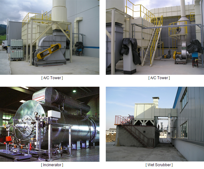 물과 약품을 이용하여 분사되는 용액속에 배기가스를 통과시켜 분진 및 악취를 제거하는 장치입니다.