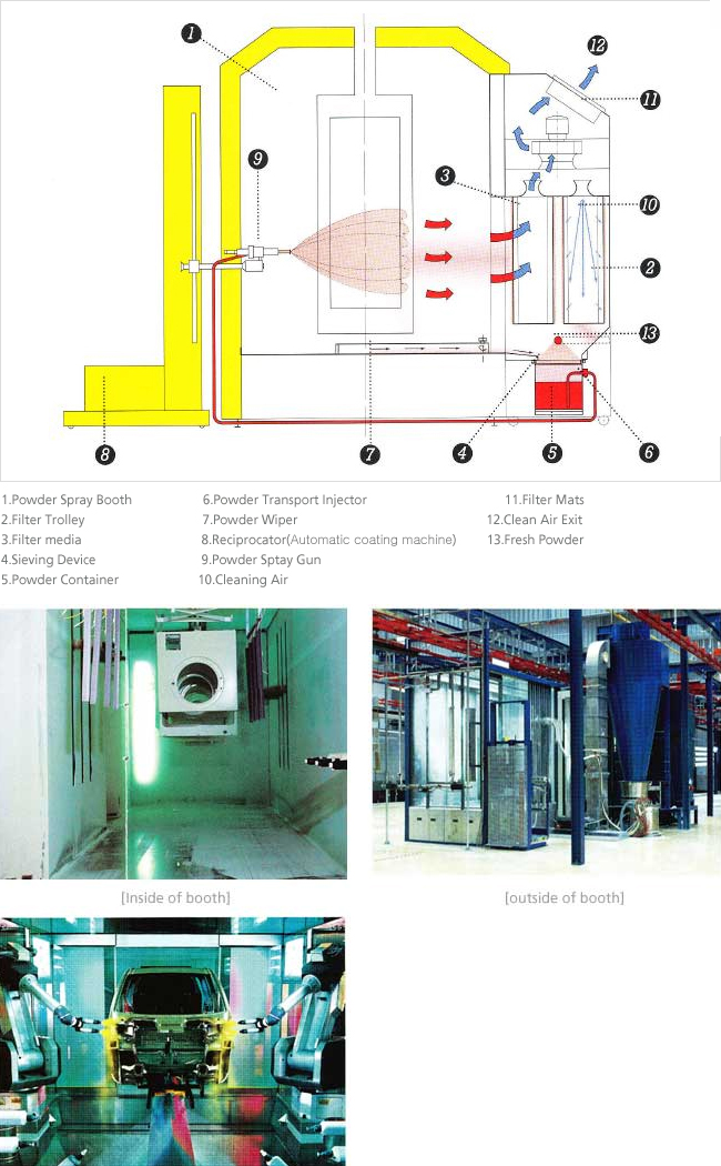 A mode to compulsorily deposit powder paint, not liquid, to the coated material. The static electricity powder coating mode is generally used using static electricity.