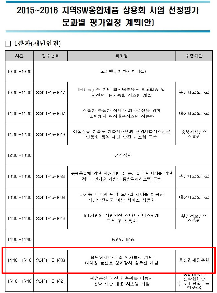 2015-2016 지역SW융합제품 사용화 사업 참여 -(주)대도테크라 기술연구소