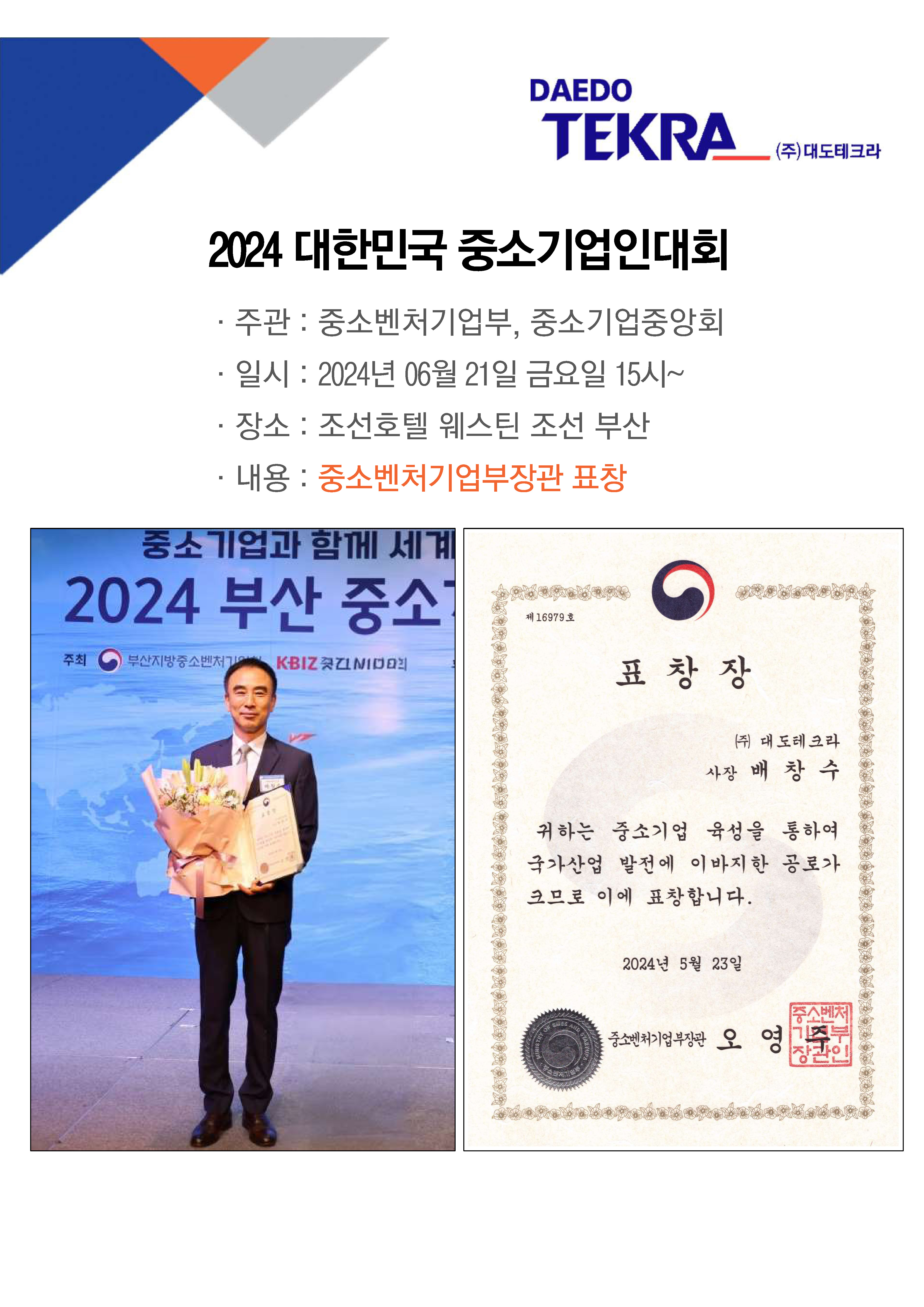 2024 대한민국 중소기업인대회 '중소벤처기업부 장관 표창'
