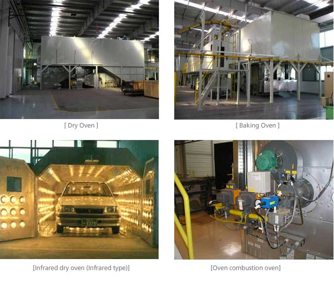 - Spray dry oven : Drying of sprayed film (Electro deposition, medium layer, upper layer, under coat ovens, etc.)